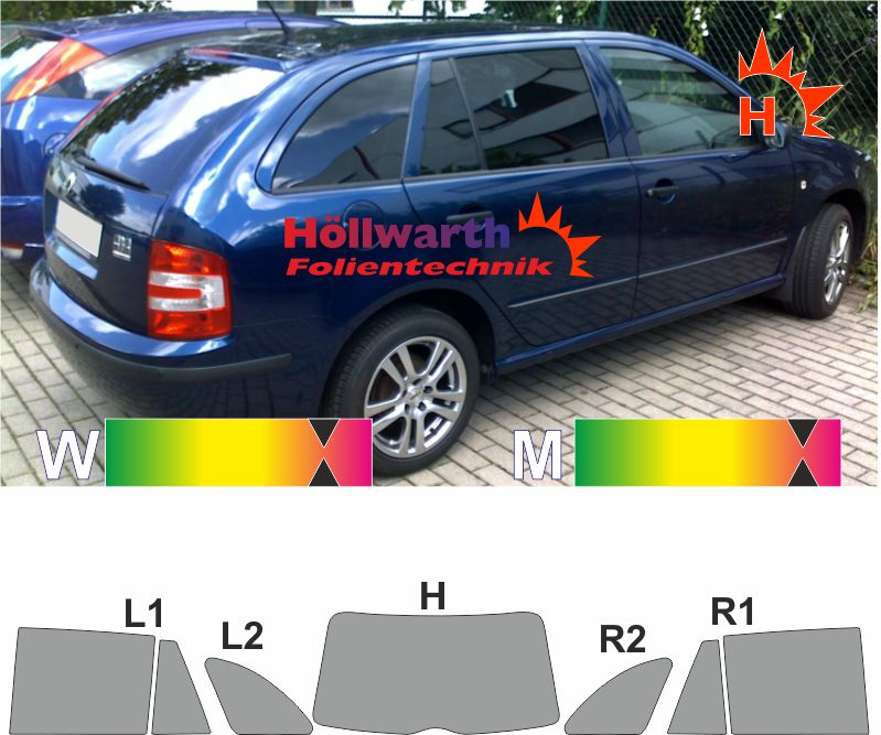Für Ihren SKODA Fabia I 6Y Kombi 1999 bis 2007 passende Tönungsfolie
