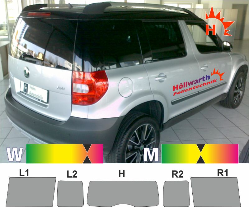 Für Ihren SKODA Yeti ab 2009 und Facelift 2013 bis 2017 passende Tönungsfolie